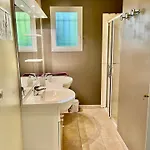 В ванной комнате также есть душевая кабина и отдельный туалет. Для удобства гостей предусмотрены фен и банные полотенца.
